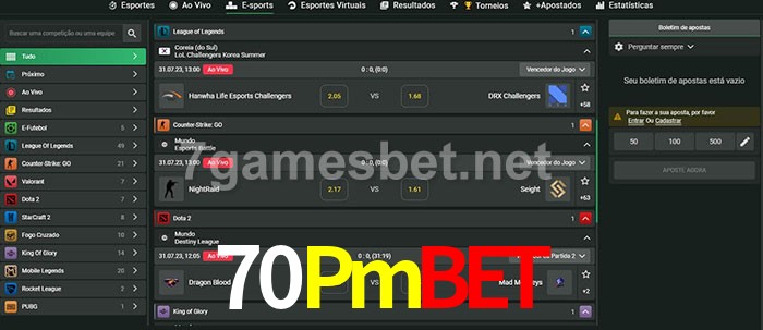 O 70Pmbet oferece uma grande seleção de opções de apostas em e-sports com probabilidades competitivas